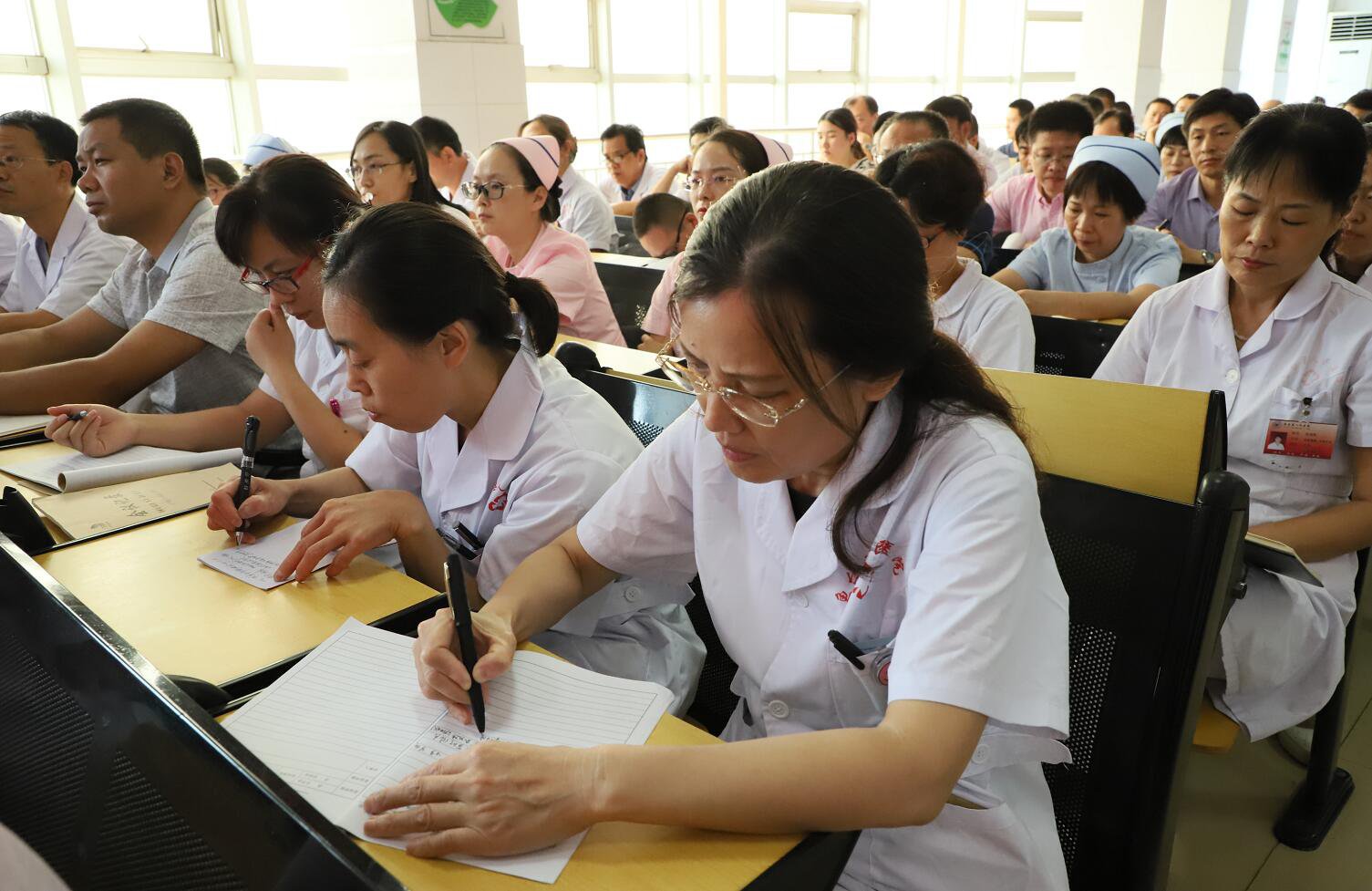 随着“二甲”复审的日益临近,我院迎评工作已进入最后冲刺阶段!为更好地调动全院职工的积极性,持续保持激昂迎评状态,确保“二甲”复审顺利通过,8月16日下午,我院召开“二甲”复审迎评冲刺动员会。医院班子成员、全院中层干部及全体医师约400余人参加了会议。会议由党总支副书记耿丽主持。